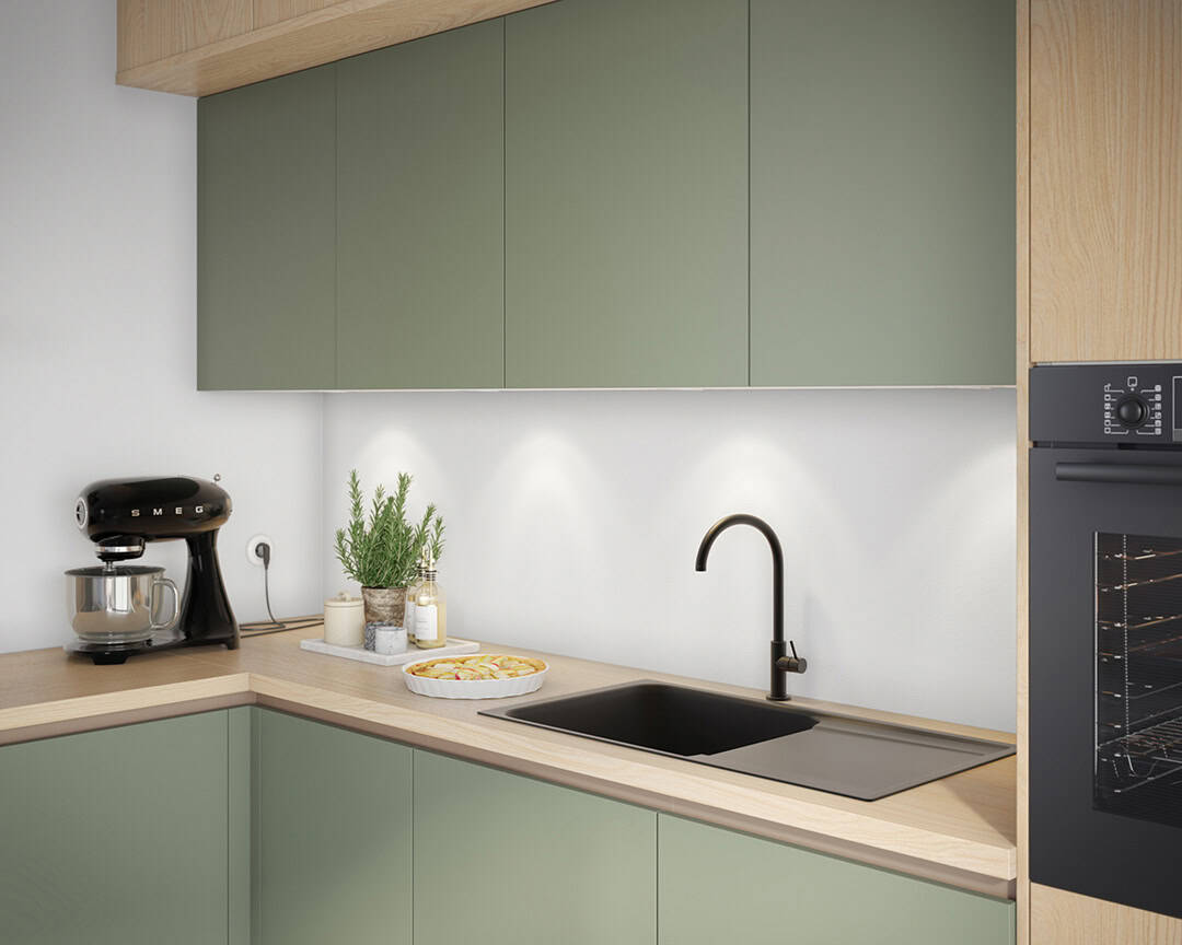 Hoewel color drenching populair blijft in interieurs, kiest de keuken in 2026 voor meer balans en nuance. Een tijdloze basis wordt aangevuld met subtiele of iets meer uitgesproken kleuraccenten die warmte toevoegen zonder te overheersen.