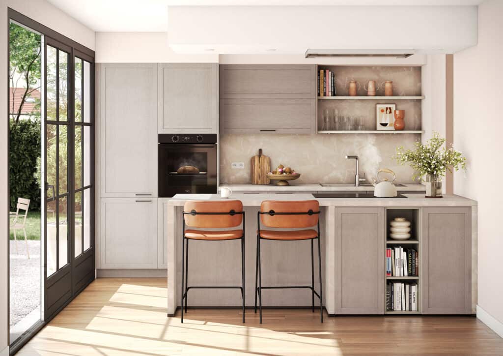 De Japandi-stijl blijft een belangrijke inspiratiebron, maar krijgt in 2026 een zachtere en warmere uitstraling. Rust, functionaliteit en authenticiteit blijven centraal staan, terwijl de Scandinavische gezelligheid behouden blijft. Warme houtsoorten zoals eik en walnoot geven fronten, kasten en planken extra diepte en karakter.